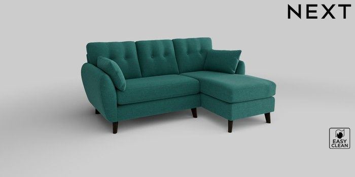 6.12.1 Buy Wilson Buttoned Back Small Sofa Chaise - Right Hand Fine Chenille Easy Clean Dark Juniper Green Retro Tapered - Dark from the Next UK online shop Click here to use our accessible website