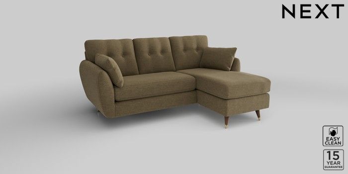 6.12.1 Buy Wilson Buttoned Back Small Sofa Chaise - Right Hand Fine Chenille Easy Clean Dark Moss Green Low Retro Tapered Metal Cap - Mid from the Next UK online shop Click here to use our accessible website