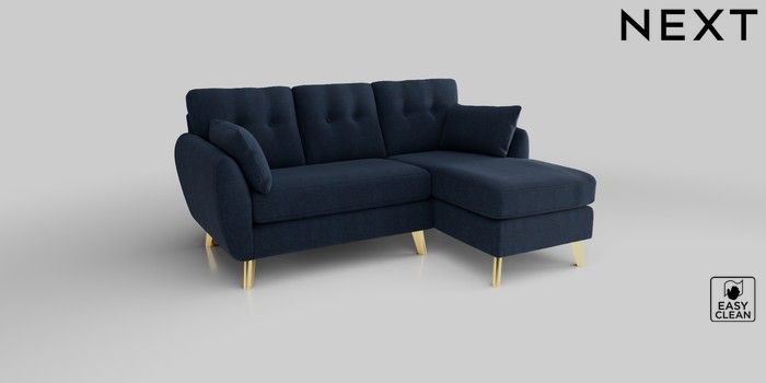 6.12.1 Buy Wilson Buttoned Back Small Sofa Chaise - Right Hand Fine Chenille Easy Clean Dark Navy Blue Metal Tapered - Gold from the Next UK online shop Click here to use our accessible website