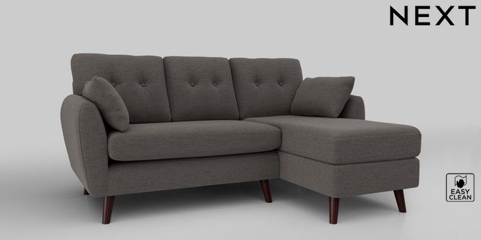 6.12.1 Buy Wilson Buttoned Back Small Sofa Chaise - Right Hand Fine Chenille Easy Clean Dark Smoke Grey Retro Tapered - Dark Brown from the Next UK online shop Click here to use our accessible website