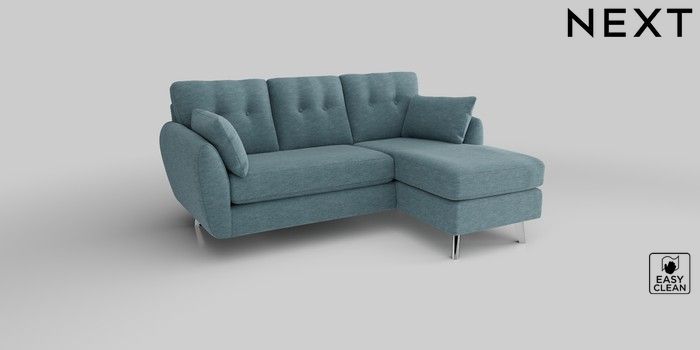6.12.1 Buy Wilson Buttoned Back Small Sofa Chaise - Right Hand Fine Chenille Easy Clean Mid Blue Metal Tapered - Chrome from the Next UK online shop Click here to use our accessible website