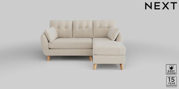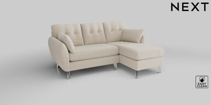 6.12.1 Buy Wilson Buttoned Back Small Sofa Chaise - Right Hand Fine Chenille Easy Clean Oyster Metal Tapered - Chrome from the Next UK online shop Click here to use our accessible website