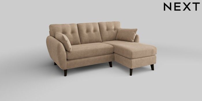 6.12.1 Buy Wilson Buttoned Back Small Sofa Chaise - Right Hand Luxe Chenille Mid Camel Beige Retro Tapered - Dark from the Next UK online shop Click here to use our accessible website