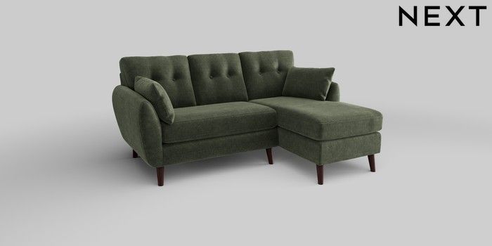 6.12.1 Buy Wilson Buttoned Back Small Sofa Chaise - Right Hand Luxe Chenille Mid Green Retro Tapered - Dark Brown from the Next UK online shop Click here to use our accessible website