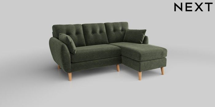 6.12.1 Buy Wilson Buttoned Back Small Sofa Chaise - Right Hand Luxe Chenille Mid Green Retro Tapered - Light from the Next UK online shop Click here to use our accessible website