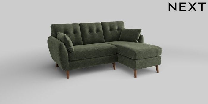 6.12.1 Buy Wilson Buttoned Back Small Sofa Chaise - Right Hand Luxe Chenille Mid Green Retro Tapered - Mid from the Next UK online shop Click here to use our accessible website