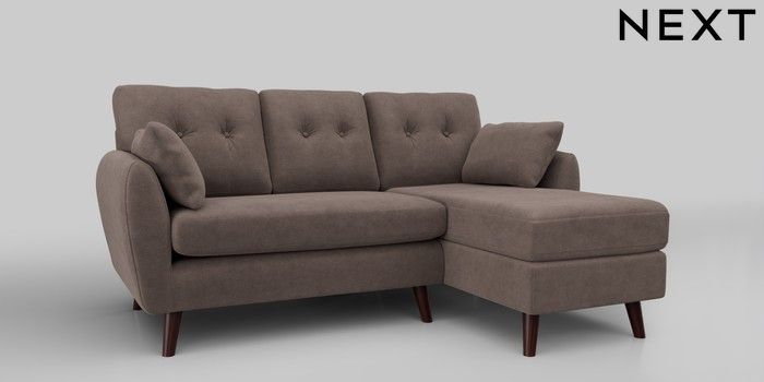 6.12.1 Buy Wilson Buttoned Back Small Sofa Chaise - Right Hand Luxe Chenille Mink Brown Retro Tapered - Dark Brown from the Next UK online shop Click here to use our accessible website