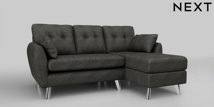 6.12.1 Buy Wilson Buttoned Back Small Sofa Chaise - Right Hand Monza Faux Leather Easy Clean Dark Grey Metal Tapered - Chrome from the Next UK online shop Click here to use our accessible website