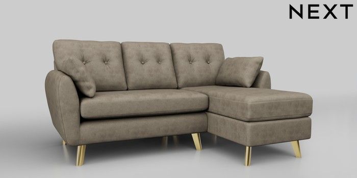 6.12.1 Buy Wilson Buttoned Back Small Sofa Chaise - Right Hand Monza Faux Leather Easy Clean Mink Brown Metal Tapered - Gold from the Next UK online shop Click here to use our accessible website