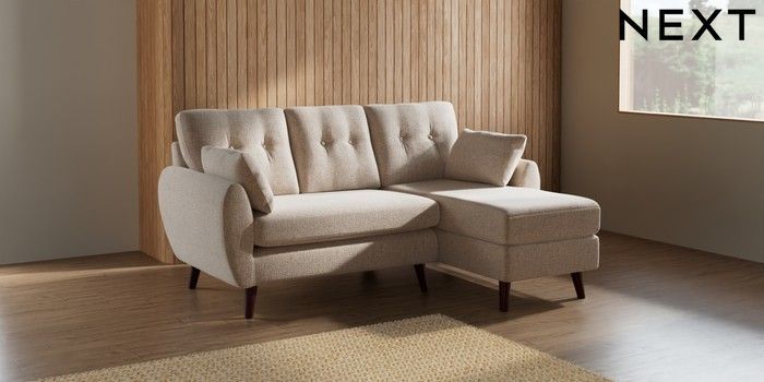 7.2.6 Buy Wilson Buttoned Back Small Sofa Chaise - Right Hand Multi Weave Mid Natural Retro Tapered - Dark Brown from the Next UK online shop Click here to use our accessible website