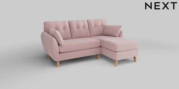 6.12.1 Buy Wilson Buttoned Back Small Sofa Chaise - Right Hand Natural Mix Light Rose Pink Retro Tapered - Light from the Next UK online shop Click here to use our accessible website