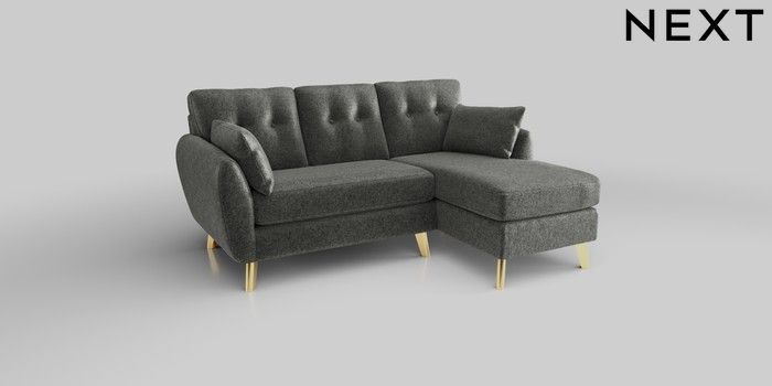 6.12.1 Buy Wilson Buttoned Back Small Sofa Chaise - Right Hand Plush Chenille Dark Grey Metal Tapered - Gold from the Next UK online shop Click here to use our accessible website