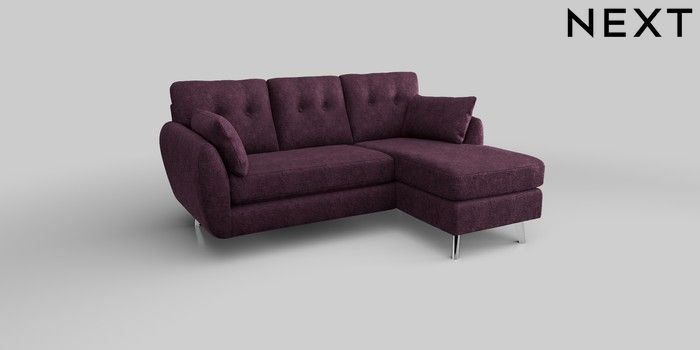6.12.1 Buy Wilson Buttoned Back Small Sofa Chaise - Right Hand Plush Chenille Dark Plum Purple Metal Tapered - Chrome from the Next UK online shop Click here to use our accessible website