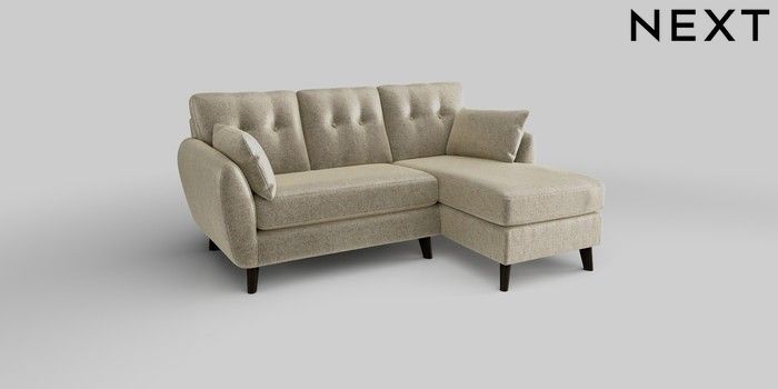 6.12.1 Buy Wilson Buttoned Back Small Sofa Chaise - Right Hand Plush Chenille Light Natural Retro Tapered - Dark from the Next UK online shop Click here to use our accessible website