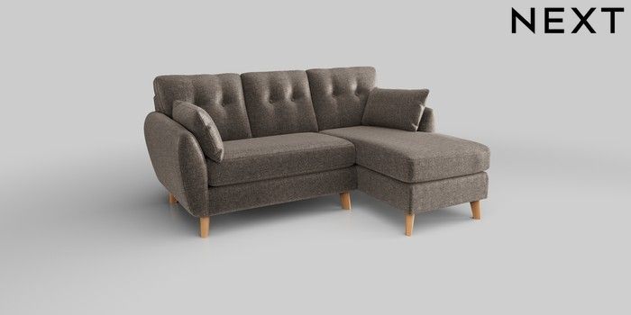 6.12.1 Buy Wilson Buttoned Back Small Sofa Chaise - Right Hand Plush Chenille Mink Brown Retro Tapered - Light from the Next UK online shop Click here to use our accessible website
