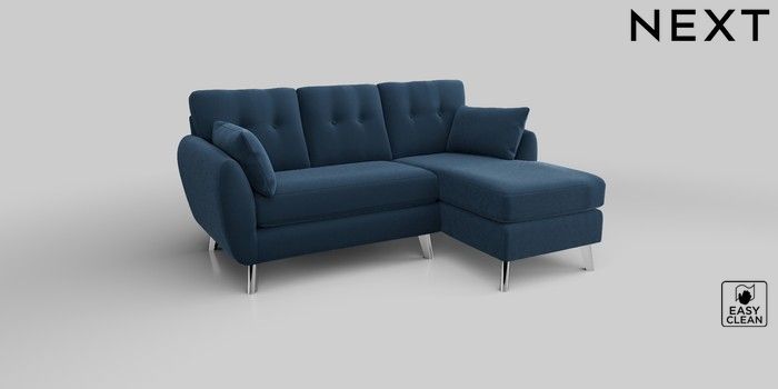 6.12.1 Buy Wilson Buttoned Back Small Sofa Chaise - Right Hand Plush Velvet Easy Clean Airforce Blue Metal Tapered - Chrome from the Next UK online shop Click here to use our accessible website