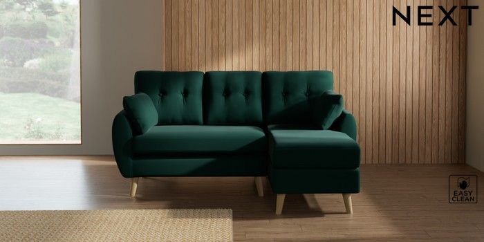 7.3.1 Buy Wilson Buttoned Back Small Sofa Chaise - Right Hand Plush Velvet Easy Clean Bottle Green Retro Tapered - Light from the Next UK online shop Click here to use our accessible website