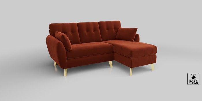 6.12.1 Buy Wilson Buttoned Back Small Sofa Chaise - Right Hand Plush Velvet Easy Clean Ginger Orange Metal Tapered - Gold from the Next UK online shop Click here to use our accessible website