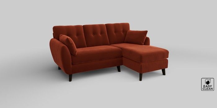 6.12.1 Buy Wilson Buttoned Back Small Sofa Chaise - Right Hand Plush Velvet Easy Clean Ginger Orange Retro Tapered - Dark from the Next UK online shop Click here to use our accessible website