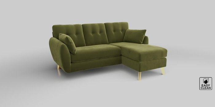 6.12.1 Buy Wilson Buttoned Back Small Sofa Chaise - Right Hand Plush Velvet Easy Clean Mid Olive Green Metal Tapered - Gold from the Next UK online shop Click here to use our accessible website