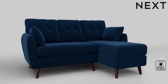 6.12.1 Buy Wilson Buttoned Back Small Sofa Chaise - Right Hand Plush Velvet Easy Clean Navy Blue Retro Tapered - Dark Brown from the Next UK online shop Click here to use our accessible website