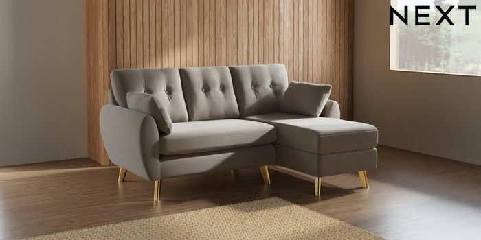 7.3.1 Buy Wilson Buttoned Back Small Sofa Chaise - Right Hand Ripple Chenille Light Natural Metal Tapered - Gold from the Next UK online shop Click here to use our accessible website