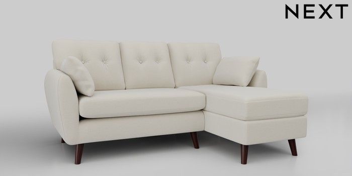 6.12.1 Buy Wilson Buttoned Back Small Sofa Chaise - Right Hand Ripple Chenille Oyster Retro Tapered - Dark Brown from the Next UK online shop Click here to use our accessible website