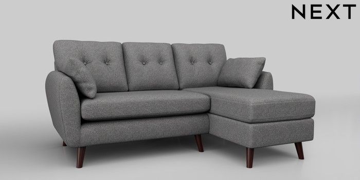 6.12.1 Buy Wilson Buttoned Back Small Sofa Chaise - Right Hand Studio Chenille Mid Grey Retro Tapered - Dark Brown from the Next UK online shop Click here to use our accessible website