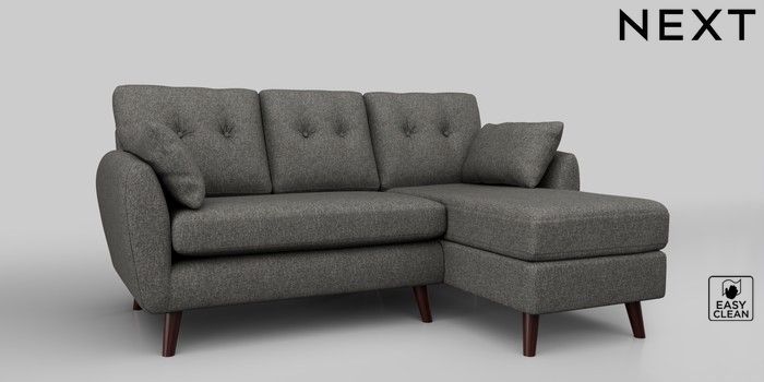 6.12.1 Buy Wilson Buttoned Back Small Sofa Chaise - Right Hand Tweedy Blend Easy Clean Dark Grey Retro Tapered - Dark Brown from the Next UK online shop Click here to use our accessible website