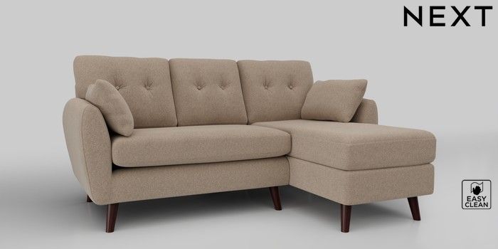 6.12.1 Buy Wilson Buttoned Back Small Sofa Chaise - Right Hand Tweedy Blend Easy Clean Light Dove Natural Retro Tapered - Dark Brown from the Next UK online shop Click here to use our accessible website