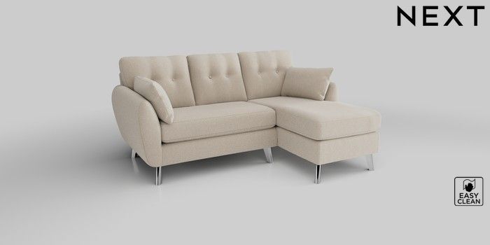 6.12.1 Buy Wilson Buttoned Back Small Sofa Chaise - Right Hand Tweedy Blend Easy Clean Oyster Metal Tapered - Chrome from the Next UK online shop Click here to use our accessible website