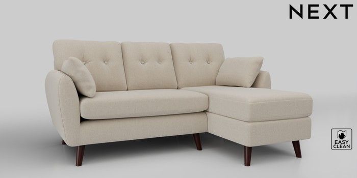 6.12.1 Buy Wilson Buttoned Back Small Sofa Chaise - Right Hand Tweedy Blend Easy Clean Oyster Retro Tapered - Dark Brown from the Next UK online shop Click here to use our accessible website
