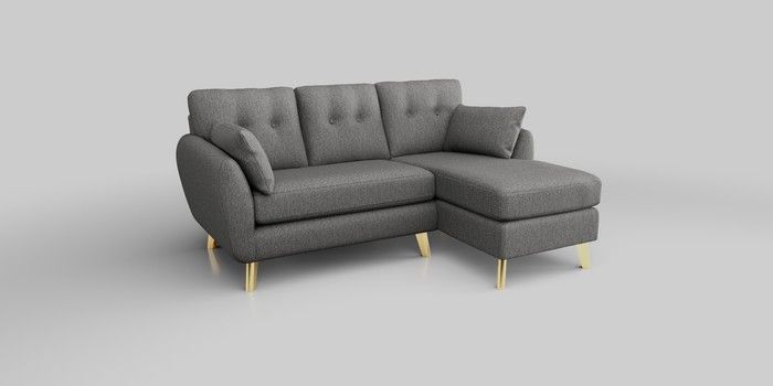 6.12.1 Buy Wilson Buttoned Back Small Sofa Chaise - Right Hand Tweedy Chenille Dark Grey Metal Tapered - Gold from the Next UK online shop Click here to use our accessible website
