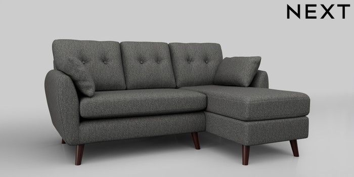 6.12.1 Buy Wilson Buttoned Back Small Sofa Chaise - Right Hand Tweedy Chenille Dark Grey Retro Tapered - Dark Brown from the Next UK online shop Click here to use our accessible website
