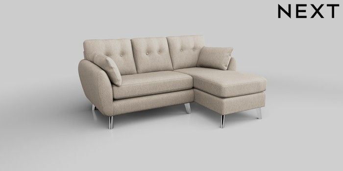 6.12.1 Buy Wilson Buttoned Back Small Sofa Chaise - Right Hand Tweedy Chenille Mid Natural Metal Tapered - Chrome from the Next UK online shop Click here to use our accessible website