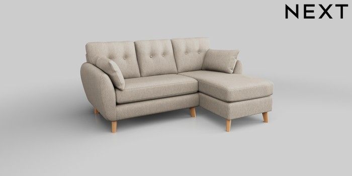 6.12.1 Buy Wilson Buttoned Back Small Sofa Chaise - Right Hand Tweedy Chenille Mid Natural Retro Tapered - Light from the Next UK online shop Click here to use our accessible website