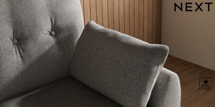 7.3.1 Buy Wilson Buttoned Back Small Sofa Chaise - Right Hand Woven Chenille Easy Clean Light Grey Metal Tapered - Gold from the Next UK online shop Click here to use our accessible website