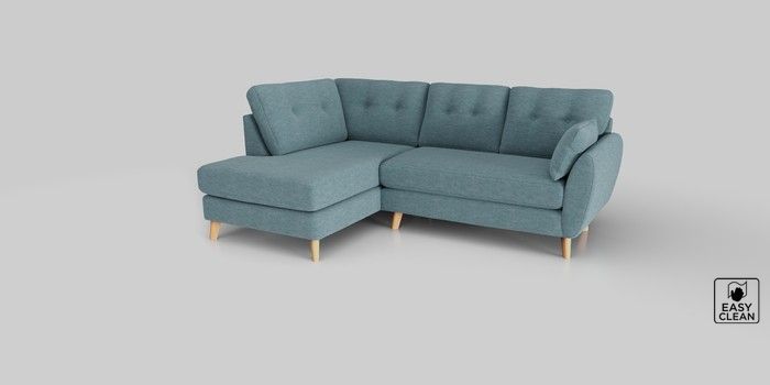 6.12.1 Buy Wilson Buttoned Back Medium Corner Chaise - Left Hand Fine Chenille Easy Clean Mid Blue Retro Tapered - Light from the Next UK online shop Click here to use our accessible website