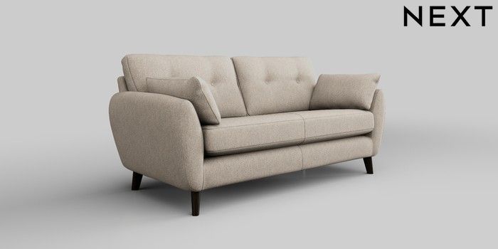 6.12.1 Buy Wilson Buttoned Back 3 Seater Small Sofa Tweedy Chenille Mid Natural Retro Tapered - Dark from the Next UK online shop Click here to use our accessible website