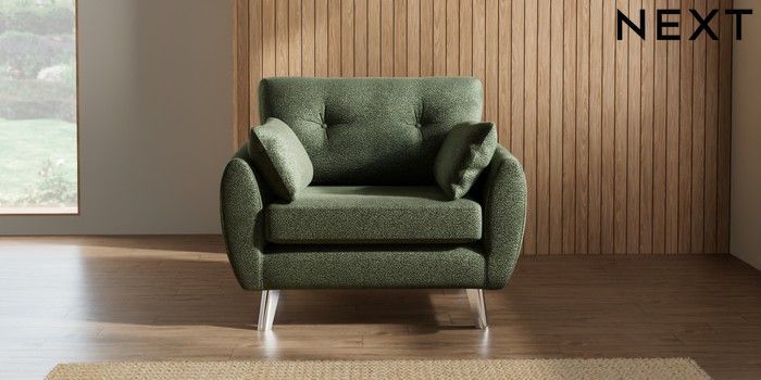 7.2.10 Buy Wilson Buttoned Back Snuggle Boucle Chenille Dark Moss Green Metal Tapered - Chrome from the Next UK online shop Click here to use our accessible website