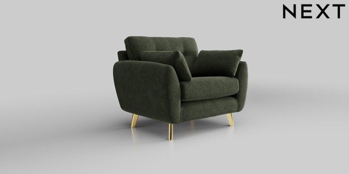 6.12.1 Buy Wilson Buttoned Back Snuggle Boucle Chenille Dark Moss Green Metal Tapered - Gold from the Next UK online shop Click here to use our accessible website