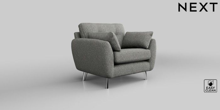 6.12.1 Buy Wilson Buttoned Back Snuggle Chunky Boucle Easy Clean Mid Grey Metal Tapered - Chrome from the Next UK online shop Click here to use our accessible website