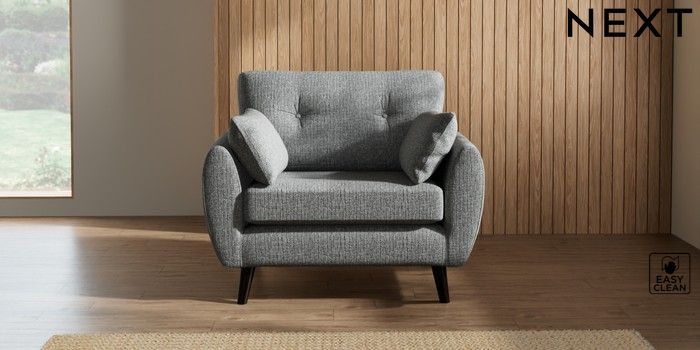 7.2.10 Buy Wilson Buttoned Back Snuggle Chunky Boucle Easy Clean Mid Grey Retro Tapered - Dark from the Next UK online shop Click here to use our accessible website