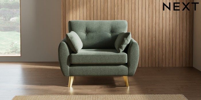 7.2.10 Buy Wilson Buttoned Back Snuggle Chunky Texture Mid Forest Green Metal Tapered - Gold from the Next UK online shop Click here to use our accessible website