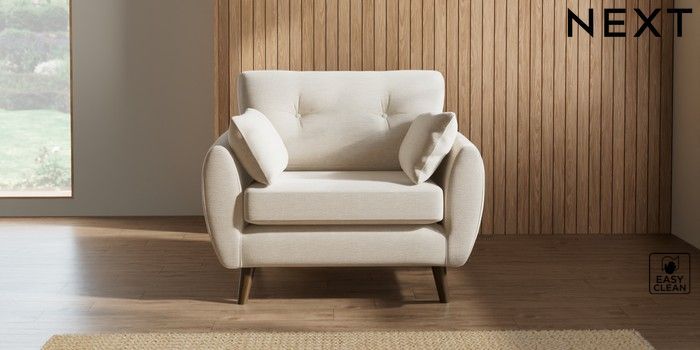 7.2.10 Buy Wilson Buttoned Back Snuggle Fine Chenille Easy Clean Oyster Retro Tapered - Mid from the Next UK online shop Click here to use our accessible website