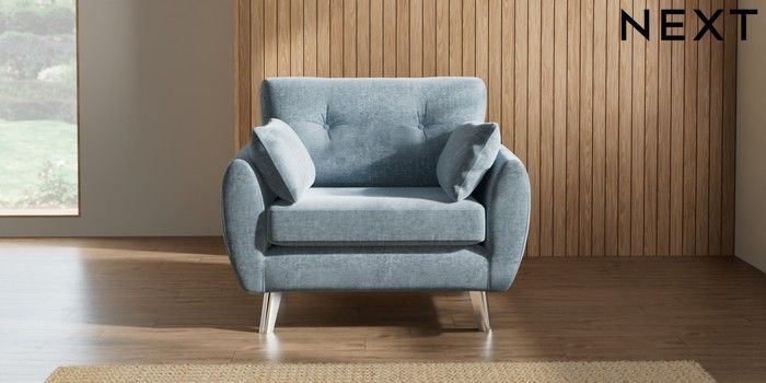 7.2.6 Buy Wilson Buttoned Back Snuggle Plush Chenille Light Blue Metal Tapered - Chrome from the Next UK online shop Click here to use our accessible website