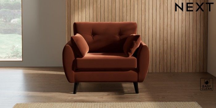 7.2.10 Buy Wilson Buttoned Back Snuggle Plush Velvet Easy Clean Ginger Orange Retro Tapered - Dark from the Next UK online shop Click here to use our accessible website