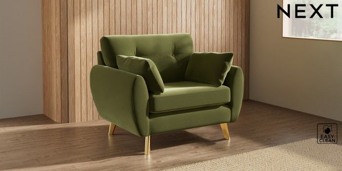 7.3.1 Buy Wilson Buttoned Back Snuggle Plush Velvet Easy Clean Mid Olive Green Metal Tapered - Gold from the Next UK online shop Click here to use our accessible website