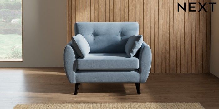 7.2.10 Buy Wilson Buttoned Back Snuggle Relaxed Linen Look Mid Blue Retro Tapered - Dark from the Next UK online shop Click here to use our accessible website
