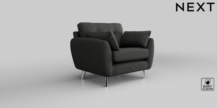 6.12.1 Buy Wilson Buttoned Back Snuggle Tweedy Blend Easy Clean Charcoal Grey Metal Tapered - Chrome from the Next UK online shop Click here to use our accessible website